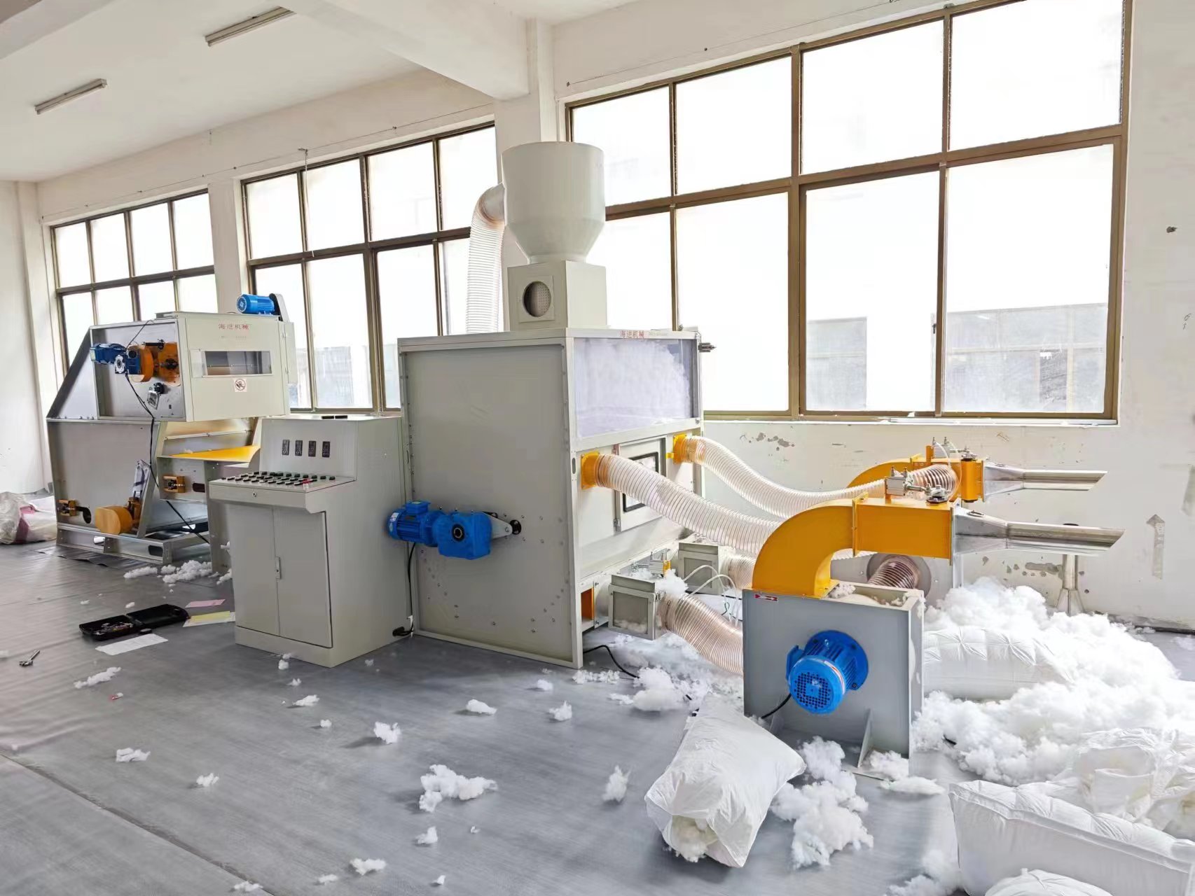 填充效率是手工的15-20倍,能充填長纖和短纖,0.7D- 15D棉、PP棉,使布沙發(fā)、坐墊、靠墊和床上用品更蓬松、柔軟和富有彈性,手感舒適。本產(chǎn)品可以做羽絲棉超細(xì)化纖,充填枕芯速度快,效果好!超細(xì)化纖開松率可以達(dá)到99%。 |