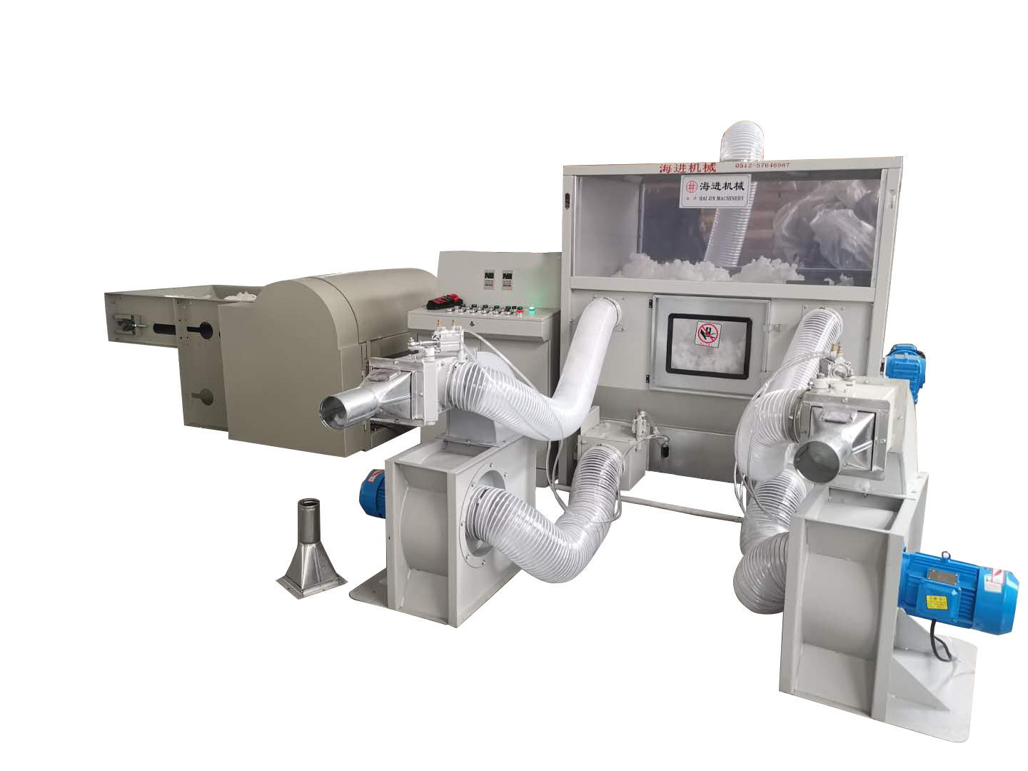 沙發(fā)充棉機是采用高壓風(fēng)機汲取羽絨、化纖等填充物,灌充羽絨服、羽絨被等被服制品的機械。...